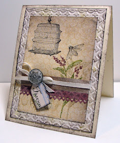 This lovely set is called Clearly For You from the new Occasions Mini Catalog! These images go so well with Nature Walk and Baby Blossoms! The base card is Blushing Bride CS the embossed frame is on Shimmery White CS. Springtime Vintage DS paper is layered on the inside of the frame. I stamped the main image on Shimmery CS with a 3/4" punched out circle from a post-it as a mask in the middle then I stamped the cherub in the blank circle and framed over the top with the Acrylic Beveled Window. Also Used: Razzleberry Taffeta ribbon, Vanilla Seam Binding as the ruffle. Basic Pearls. Inks: Razzelberry pad and marker, Soft Suede pad, Old Olive Marker. Sticky Sheet piece for the Beveled Window, Scallop Border Punch.